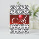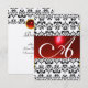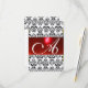 RED BLACK WHITE DAMASK GEM MONOGRAM rsvp silver Card