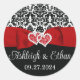 Red, Black, White Damask Love Hearts Wedding Classic Round Sticker