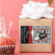 This customisable black and white damask wine label sticker has a red PRINTED ribbon and a PRINTED jewel and diamond brooch on it. The text is customisable. If you need help personalising this with your own details, or if you need any changes, please email niteowlstudio@gmail.com.