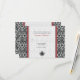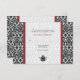 Black and white with red accents, this elegant damask wedding reply or rsvp card has a vintage feel. Great for a vintage style wedding using a black, white, and red wedding colour theme. The text is easy to customise. Just change it using the personalise option. To change the font, font size, font colour, and/or text placement, you can do that using the customise it option. This reply could be used for a variety of special occasions, such as anniversary, retirement, or special birthday. You can change the text and use it as an invitation in itself or you can use it as a direction, reception, and/or accommodation card. The lines can also be removed using customise it.