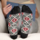 Step out in style with these red, black, and white geometric keffiyeh folk pattern socks. Perfect for everyday wear, sports, or lounging, these unique socks combine comfort and cultural design. The bold bohemian-inspired print makes them a great gift idea for birthdays, holidays, or special occasions. Ideal for fans of folk art, ethnic patterns, and modern boho fashion. Add a touch of personality to your wardrobe with these standout socks.