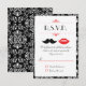 Red, Black & White Moustache & Lips Damask RSVP Card