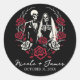 Red & Black White Roses Skeleton Couple Wedding Classic Round Sticker
