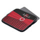 This personalised red, black, and white striped laptop sleeve with a FAUX ribbon and crystal brooch has text boxes for you to customise with your own name, initials, business name, or other text. If you need any help customising, please email niteowlstudio@gmail.com.