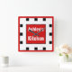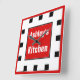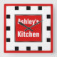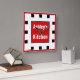 Modern 10.75" x 10.75" wall clock with red and black squares, personalised with your own text, and a perfect custom touch for any kitchen, bedroom, dorm room, etc.