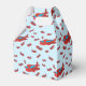 A cute red and blue aeroplane pattern with a light blue background colour and customised name in the middle. Ideal boy baby shower favour box. Matching party decor can be viewed in this design's collection.