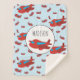 Red & Blue Aeroplane Pattern Custom Name Sherpa Blanket