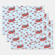 Red & Blue Aeroplane Pattern Wrapping Paper Sheet