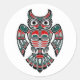 Red Blue and Black Haida Spirit Owl Classic Round Sticker