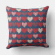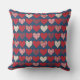 Red, Blue and White Hearts on Midnight Blue Cushion
