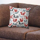 This fun Nordic style throw pillow has a colorful pattern of red and blue birds on a white background. Along with the bird images are matching color symbols and flowers. Both sides of the pillow have the same image. Be sure to check our store for matching products.