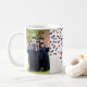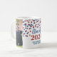 Customisable photo template class of 2024 graduation mug with red white and blue confetti pattern.