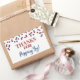 Thanks for popping by favour tag sticker with red and blue glitter pattern confetti. Perfect popcorn favours for wedding or baby shower.