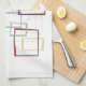 This funky mid-century modern kitchen towel features dark red, light blue, soft green, and yellow abstract squares and rectangles. It's highlighted by thin black abstract squares and rectangles. Add a pop of retro fun to your kitchen decor!