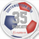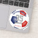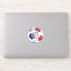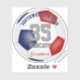 This team colours soccer sticker for boys or girls features the realistic image of a soccer ball that has red, blue and white panels - customise the player's name, jersey number, team name and mascot name - by katz_d_zynes