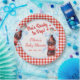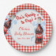 Add a charming and playful touch to your celebration with these Red & Blue Ready to Pop Baby Shower Paper Plates. Featuring a classic red gingham background and a cute vintage-style soda bottle accented with a blue coquette bow, these plates perfectly capture the fun and nostalgic spirit of a “Ready to Pop” baby shower theme.
