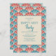Red and blue shell/fan pattern Empty Nest party invitation. Contact us for help with customisation or to request matching products.