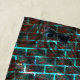 Red and blue stained, scratches, grate or different and leaning brick wall effect with blue stain on brick joint.