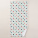 Minimal and modern bath towel features red and cyan blue stars and dot line geometric seamless pattern on yellowish green background. Enhance its appeal by personalising it with your initial letter monogram, making it uniquely yours.