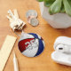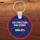 This cool basketball themed keychain features the realistic image of a basketball that has alternating red, white and blue recolored panels on the front and a simple blue basketball shape on the back - easily personalise with player name & jersey number on the front and school or club name & mascot name on the back - by katz_d_zynes