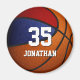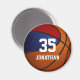 This team colours basketball themed magnet for boys or girls features the realistic image of a basketball that has two recolored panels--one red and one blue - easily customise with player name & jersey number - by katz_d_zynes