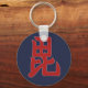 Your keys are save on this sturdy basic button key-chain with this famous Japanese Uesugi Mon in red. The background is blue.