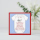 Adorable red and blue baby boy shower invitation features a red, white & blue background. This adorable red and blue whale baby shower invitation is easily customised for your event by adding your event details, font style, font size & colour, and wording.