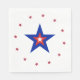 Celebrate America with these star-studded napkins, the perfect addition to your patriotic celebrations and gatherings. Each napkin showcases a large, resplendent five-pointed star at its centre The central star boasts a striking blue outer layer, a vibrant red middle layer, and an inner layer with the main napkin colour showing through. Surrounding this magnificent centerpiece is a ring of smaller stars, with the red and blue colours switched in order from the centre star. They are perfect for any occasion, whether it's a Fourth of July celebration, Memorial Day gathering, Veterans Day event, or simply a display of national pride during year-round festivities.