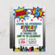 Red Blue Yellow Bam Superhero 5th Birthday Invitation