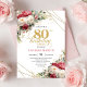 Red blush roses 80th birthday invitation with gold