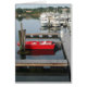 Bright red boat reflecting beautifully in the water, safely docked for the evening. Customise your own greeting cards and stamps! Thank you for your purchases!