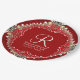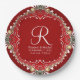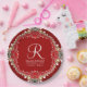 Red Bohemian Batik Monogram V2 Wedding Paper Plate