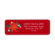 Make your mail sending easier with this personalised return address label featuring custom address text, a classic red background with a bold red poinsettia, green pine branches, leaves and sweet little white blossoms for a fun but traditional take on the classic Christmas motif.