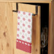 This winter theme kitchen towel features a pretty pattern of red and gold snowflakes which are placed on a white background. At one end is a matching red border with a white diamond shape liner. Festive, bright, and versatile enough to be used beyond the Christmas season. Be sure to see the matching products in our store. Design credit for the snowflake pattern to https://www.etsy.com/shop/ephrazydesign.