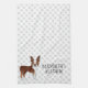 Red Boston Terrier Cartoon Dog & Your Custom Text Tea Towel
