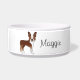 Destei's original cartoon illustration of a cute red and white coat colour Boston Terrier breed dog. There is also a personalizable text area for a name or other custom text.