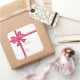 Lovely white gift tag sticker with red bow and ribbons with polka dots.