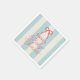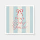 This coquette baby shower napkin features a red bow on a cream background with light blue stripes. Personalize it for your needs. You can find matching products at my store.