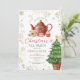 Red Bow Christmas Tea Adult Birthday Party Floral Gingham Holiday Invitation