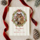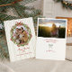 Timeless and whimsical Christmas holiday card with a sage green striped background and a watercolor wreath design with a red ribbon. This holiday card is sure to make anyone feel the spirit of Christmas. On the front side, we have the beautiful wreath - playfully adorning your photo and on the reverse side is a small sage green bow, another photo template and space for your Christmas wishes to complete the perfect message. Spread joy and cheer with our watercolor bow wreath Christmas card this holiday season!