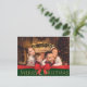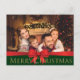 Red Bow Golden Sparkling Merry Christmas Photo Holiday Postcard