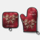 Beautiful Red Bow Holiday Oven Mitt & Pot Holder Set