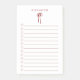 Stay festive and organized with this Red Bow Holiday To-Do List Notepad. Featuring an elegant hand-drawn bow at the top and clean, minimal lines for all your daily notes or shopping lists, it’s perfect for the holiday season or year-round use. Ideal for jotting down reminders, Christmas tasks, or quick thoughts with a charming seasonal touch.