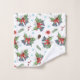 Here's a pretty Holiday season bath towel set that features silver bells and holly sprigs tied with a bright red bow. Along with the bell images are red poinsettia blossoms, pine cones, red berries and blue snowflakes. The pattern is placed on a snow white background, and covers the hand towel and the wash cloth. The bath towel is white, with a matching silver bell, red bow, holly and red berry border, plus your name in matching green script. Elegant and beautiful!