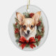 Red Bow Holly Wreath Chihuahua Dog Ceramic Tree Decoration