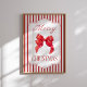 Festive Christmas poster featuring a bold red ribbon bow and striped red-and-white background. Perfect for adding cheerful holiday charm to your living room, entryway, or seasonal event.