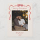 Send warm holiday wishes with this timeless classic red bow Christmas post card. Featuring an elegant watercolor red ribbon and bow framing your favourite family photo, this design blends festive charm with classic style. The “Merry Christmas” script adds a heartfelt touch, while the simple cream background keeps the focus on your picture. Can customise to your own holiday greeting.