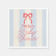 This coquette baby shower napkin features a red bow on a cream background with Pale blue stripes. Personalize it for your needs. You can find matching products at my store.
