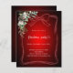 For a Christmas party with family and friends.. Decorated with a red simple hand-drawn bow, greenery and a pine cone. Personalise and add the details. Christmas party with a heart. Red gradient background.