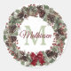 Red Bow Pinecone Wreath Monogram Christmas Classic Round Sticker